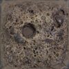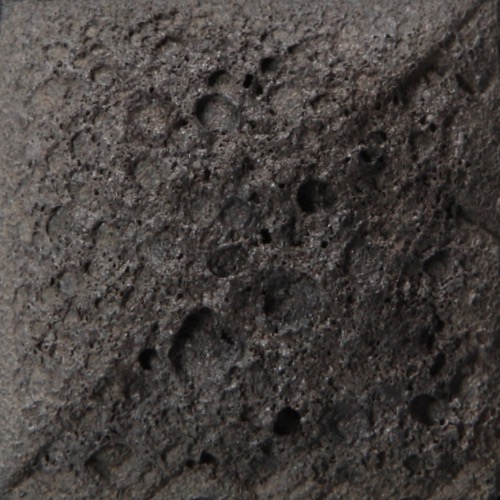 Oxidación a cono 6 (imagen grande): El esmalte Black Mudcrack tiene una textura muy marcada que forma una superficie agrietada y en relieve. Cuanto más gruesa sea la capa, más texturizada será la superficie. Reducción a cono 10 (imagen pequeña): La textura se aplana y el color permanece negro.